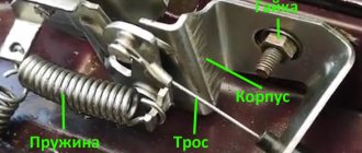 Removing the mirror housing from the triangular mount is quite simple; you just need to unhook the spring, unscrew the adjusting rod and remove its pin.
