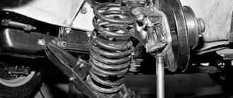 The front suspension shock absorber (or strut) is attached to the steering knuckle from below with two bolts and from above through a support to the wing cup. Serves to absorb shocks from the suspension, ensuring a smooth ride. For a smooth return to the starting position, a coil spring with the same pitch of turns is used. Just like the lever, the shock absorber is subject to wear, as it takes impacts from the wheels.