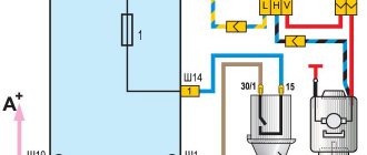 Схема вентилятора охлаждения у машин с инжектором немного другая. Здесь всем управляет электронный блок. Информация с датчика включения сначала анализируется контроллером, а уж после передается на реле.
