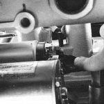 - Взяв головку на 12, медленно снимите два болта, которые держат тормозной барабан. Чтобы его демонтировать, поместите снятые болты в резьбовые отверстия. Таким образом, крепления будут сдвигать деталь, упираясь во фланец.